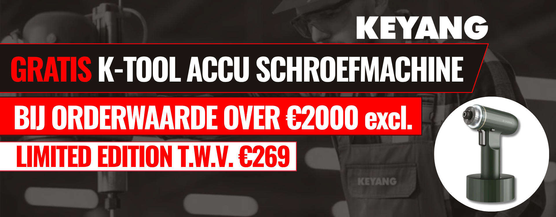 ACTIE! Gratis Keyang K-TOOL Accu Schroefmachine (Limited Edition) bij bestellingen vanaf €2.000,- excl. btw