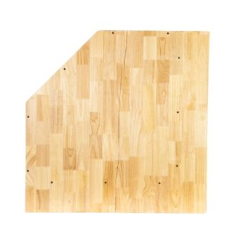 Pillar hoekwerkblad van massief rubberhout 860×860 mm met 38 mm dikte. Duurzaam, stijlvol en ideaal voor een naadloze hoekopstelling in werkplaatsen.