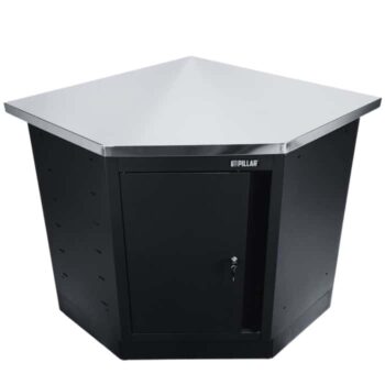 Pillar hoek afdekpaneel van staal voor een strakke en professionele afwerking van hoekopstellingen. Ideaal voor het netjes afwerken van modulaire werkplaatsinrichtingen.