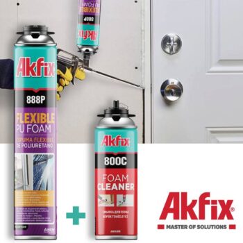 AKFIX SET Flexfoam 888P 12x + 800C Foamcleaner 1x – Flexibel PU Purschuim & Reinigingsset