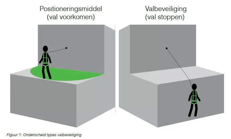We kunnen 2 soorten persoonlijke valbeveiliging onderscheiden, namelijk: