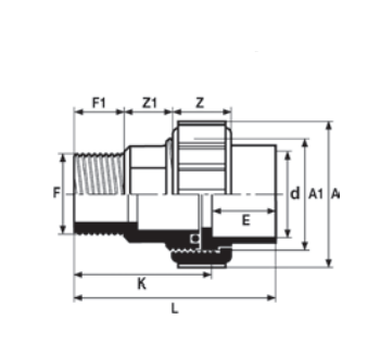 Girair PVR Koppeling 3-delig met messing binnendraad