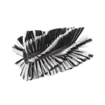Twee borstels naast elkaar draaien parallel aan de grond en in tegengestelde richtingen. Ze vegen vuil naar het midden, waar het wordt opgevangen. Deze configuratie zorgt voor gelijkmatige reiniging over de volledige breedte, ideaal voor stof, bladeren en klein vuil.