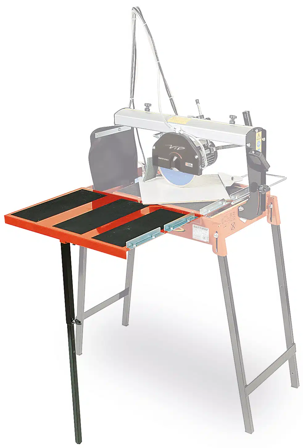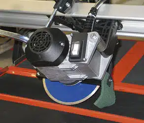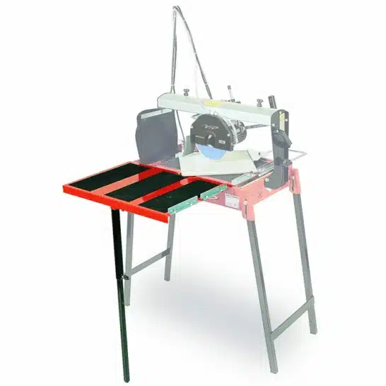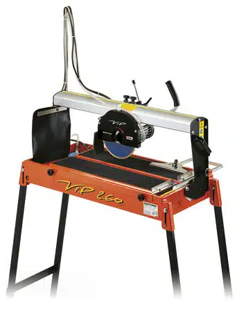 De Battipav Tegelzaagmachine VIP 260 is een elektrische radiaaltegelsnijder voor rechte en 45°-hoekzaagsneden op keramische, enkelgebakken en porseleinen tegels. Licht en compact, uitgerust met schuifkop en kantelmotor. Bij de VIP serie klappen de poten onder het werkblad in.