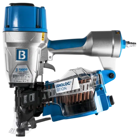 Het speciale ontwerp van de LignoLoc-nageltip en de grote hoeveelheid warmte die wordt gegenereerd door wrijving wanneer de spijker wordt ingeslagen, zorgt ervoor dat de lignine van de houten spijker zich aan het omringende hout vastsmelt een stof-tot-stof verbinding vormt. Houten spijkers hebben een aanzienlijk ruwer oppervlak. Deze natuurlijke oppervlakteruwheid is nodig om het ligninelasproces te vergemakkelijken. De LignoLoc pneumatische tackers van FASCO leveren de benodigde kracht voor dit proces.