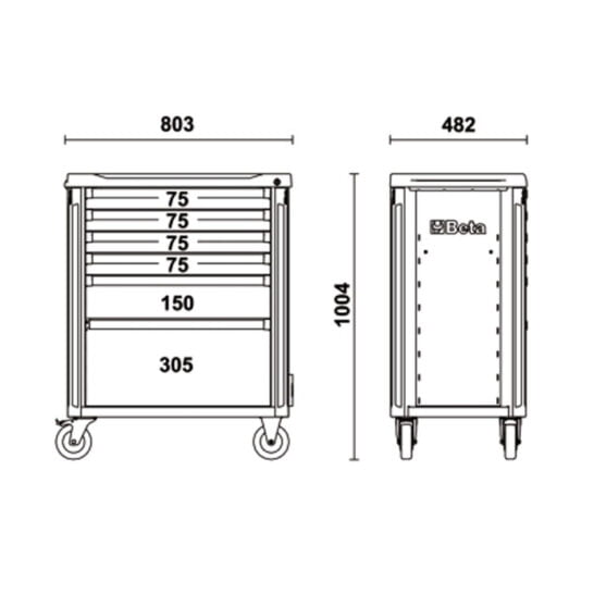 Kenmerken Beta C37/7 Gereedschapswagen met 7 laden – Diverse kleuren leeg