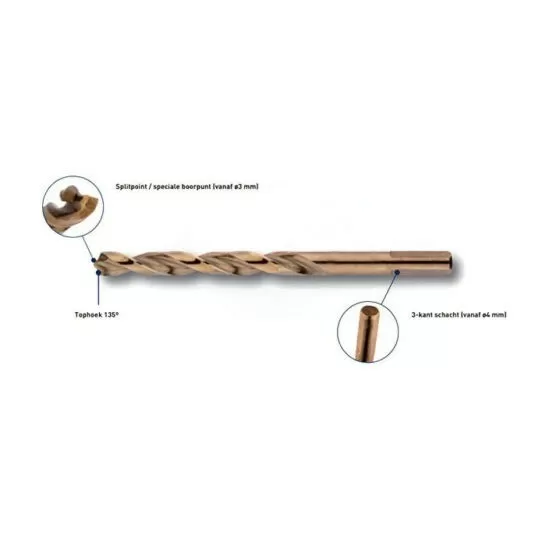 • Tophoek 135°, met kruisaanslijping volgens DIN 1412-C