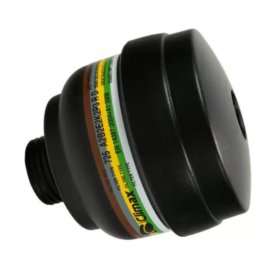 De gecombineerde filter 725 ABEK2 is ontworpen voor gebruik met de masker 731-C en maskers met een standaard schroefdraad (DIN EN 148). Is gemaakt van plastic en klokvormig om een betere luchtstroom mogelijk te maken. Het heeft een taps toelopende behuizing met een opening aan de bovenkant voor luchtinlaat en bevat het filtermedium binnenin dat inhaleert met behoud van vaste en vloeibare deeltjes.