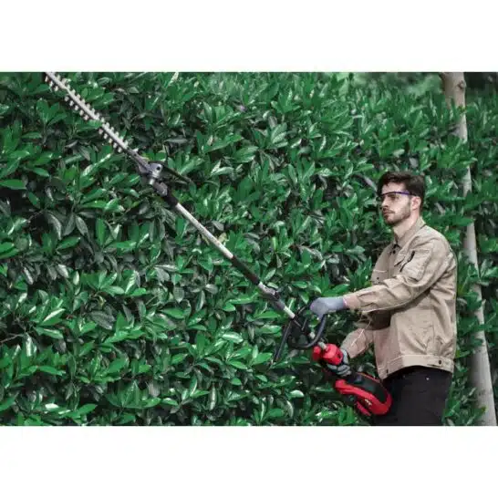 - Hoogwaardige snijprestaties – Dubbelzijdige heggenschaarmessen en bump-feed maaikop voor nauwkeurig en efficiënt resultaat
