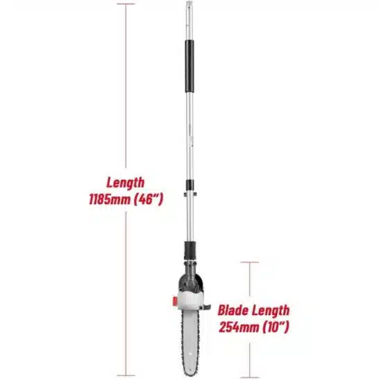 Met een variabel toerental en een robuust ontwerp is dit opzetstuk perfect voor zowel professionals als veeleisende doe-het-zelvers die moeiteloos en veilig bomen willen snoeien.