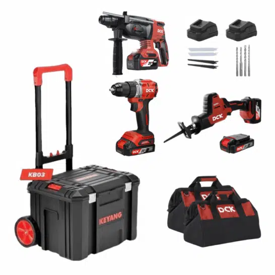 DCK Plumberset 20V Accu Gereedschap Set – Reciprozaag, Boorhamer & Boor-/Schroefmachine in Trolley