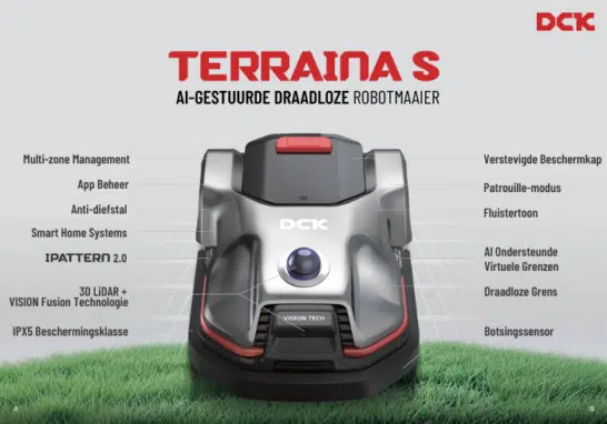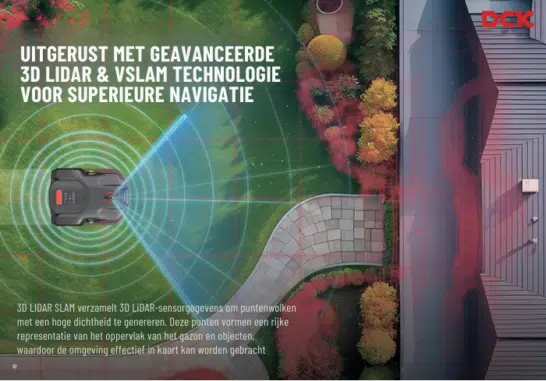 - DCK Robotmaaier zonder draad – met 3D LiDAR, AI & slimme navigatie tot 2000 m² – DCK TERRAINA S