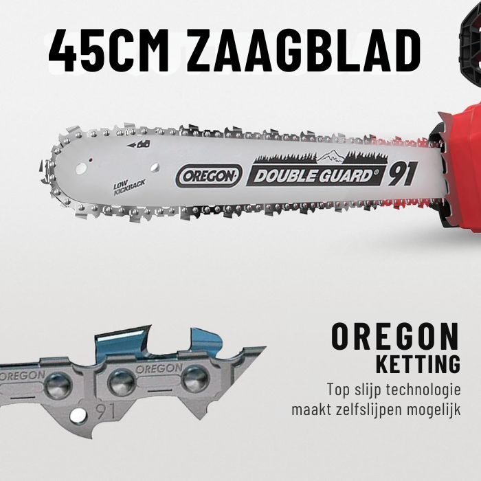 - 45 cm (18-inch) Oregon® zaagblad: Hoogwaardige ketting en zaagblad zorgen voor nauwkeurige sneden en betrouwbare prestaties.