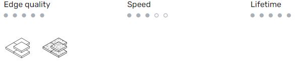 De schijf is uitgerust met een ultradunne diamantlaag van 1,1 millimeter, waardoor de tegel zelfs met een zacht glazuur kan worden doorgeslepen. Het blad kan gebruikt worden op een haakse slijpmachine met een standaardbevestiging. Dankzij het nieuwe ontwerp van het blad met doorkijkeffect kun je de snijlijn controleren. De flens versterkte mesbehuizing zorgt voor het doorslijpen van harde keramische tegels. Lasersegmentatie zorgt voor efficiënte koeling van de snijlaag.