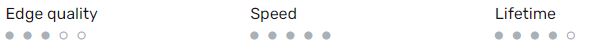 Bij het testen van het blad op porselein gres was de levensduur bijna 5 vierkante meter en 440 strekkende meter, wat behoorlijk goed is voor een gereedschap dat gebruikt wordt voor droog doorslijpen. Er is ook een hoge kwaliteit en schoon doorslijpen, wat belangrijk is bij het werken met tegels.