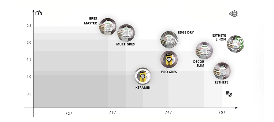 Het blad is vervaardigd met een buitendiameter van 125 mm, met een bevestigingszitting van 22,2 mm, en wordt gebruikt op 125 haakse slijpmachines zonder koelmiddel. Het werkt uitstekend in combinatie met het Distar Slider 45 hulpstuk voor de haakse slijper voor het doorslijpen onder een hoek van 45 graden.