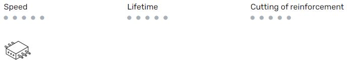 - Toont een hoge snelheid en lange levensduur bij het werken met zelfs zwaar, hoog gewapend beton.