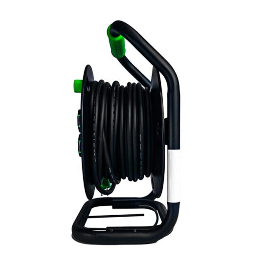 De D’Orly 3×1.5mm² Neopreen Kabelhaspel zijn speciaal ontworpen voor professionele gebruikers in de bouw, industrie en agrarische sector. Dankzij de hoogwaardige H07RN-F rubber/neopreen kabel bieden deze haspels maximale slijtvastheid, flexibiliteit en bescherming tegen zware omstandigheden. De haspels zijn voorzien van zelfsluitende kleppen op de stopcontacten, een kabelgeleider voor eenvoudig oprollen en een stelschroef aan de achterzijde om de haspel vast te zetten tijdens transport.