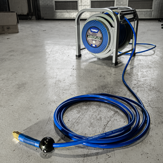 Kenmerken D’Orly AEROFLEX Zelfoprollende – veerbediende luchtslanghaspel 12 bar – luchtslang met haspel