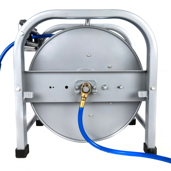 Zelfoprollende luchtslanghaspel met een maximale luchtdruk van 12 bar. Werkt goed in combinatie met de muurbeugel om de haspel aan de muur vast te zetten.