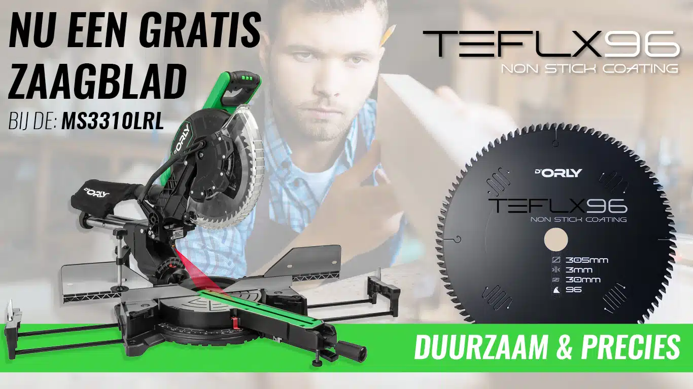 - + GRATIS Extra Zaagblad – Hoogwaardig teflon gecoat zaagblad van D’Orly t.w.v. €89,- excl. BTW – TEFLX96