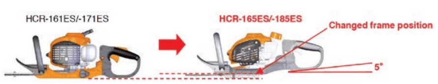 Haakt en stoot niet. De nieuw ontworpen achter handgreep heeft als pluspunt dat de framebasis hoger is geplaatst dan het blad. Dit betekent dat de HCR-185ES soepel over heggen loopt zonder te stoten en te haken.