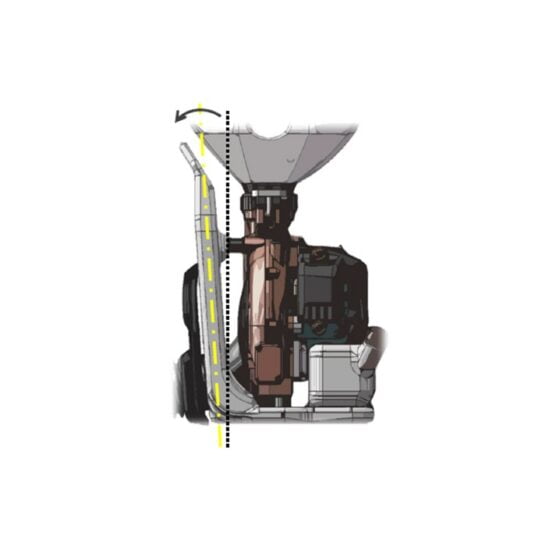 GEKANTELD RUGZAKFRAME Het naar voren gekantelde rugzakframe zorgt voor een optimale balans tijdens het werken en vermindert de belasting op de rug en schouders van de bestuurder |