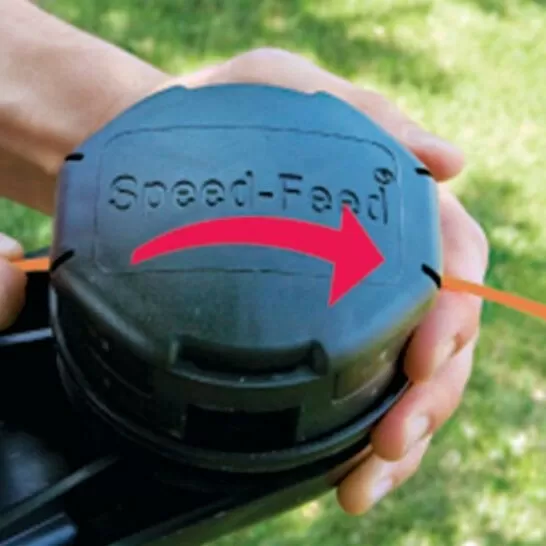 Neem al het gedoe met het bijvullen van uw maaikop weg, door de gemakkelijkste laadkraan te gebruiken om de kop op te voeren. Speed Feed 400 herlaadt in minder dan 30 seconden d.m.v. slechts 3 eenvoudige stappen: De pijlen tegenover elkaar zetten, de lijn doorvoeren, de bovenste schijf draaien.