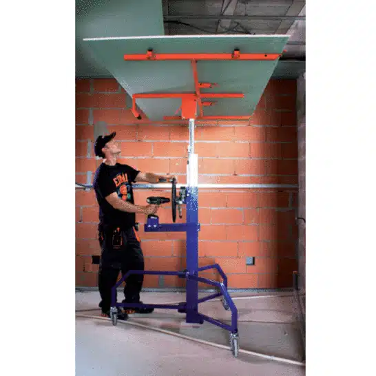Met deze professionele Edmaplac 450 semi automatische Platenlift kun je zowel handbediend als met behulp van een accuboormachine automatisch snel en licht platen liften en bevestigen. Door een gepatenteerd systeem kan de lift zonder te draaien aan het handwiel snel en gecontroleerd dalen. Hiervoor is geen kracht inspanning benodigd. De lift is een alleskunner op het gebied van beplating. Deze combi-lift kan zowel horizontaal voor plafonds als voor het verticaal plaatsen tegen wanden worden ingezet. In horizontale stand kan een hoogte van 4,5 m worden. In verticale stand kan bij gebruik van 2,5 m platen een hoogte van 6,25 worden bereikt