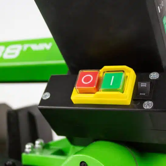 Achter bij de motor zet je de snelheid op 60m/min ( I ) of 80 m/min ( II ).