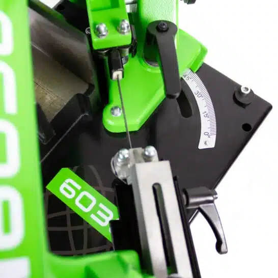 De stabiele bouw uitgevoerd met kogellagers, geven een gegarandeerde rechte zaagsnede. Door de zwenkbare machineknop zijn schuine delen van 0 ° – 45 ° mogelijk.