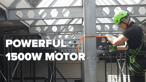 De RCD-magneetschakelaar zorgt voor veilig gebruik door ervoor te zorgen dat de motor alleen start wanneer de magnetische schakelaar wordt omgezet. De sterke magneet met dubbele spoel heeft een maximale aantrekkingskracht van 14.000 N betekent dat de magneet zelfs op dunnere oppervlakken kan worden gebruikt. Voor extra veiligheid is er ook een meegeleverde spanband.