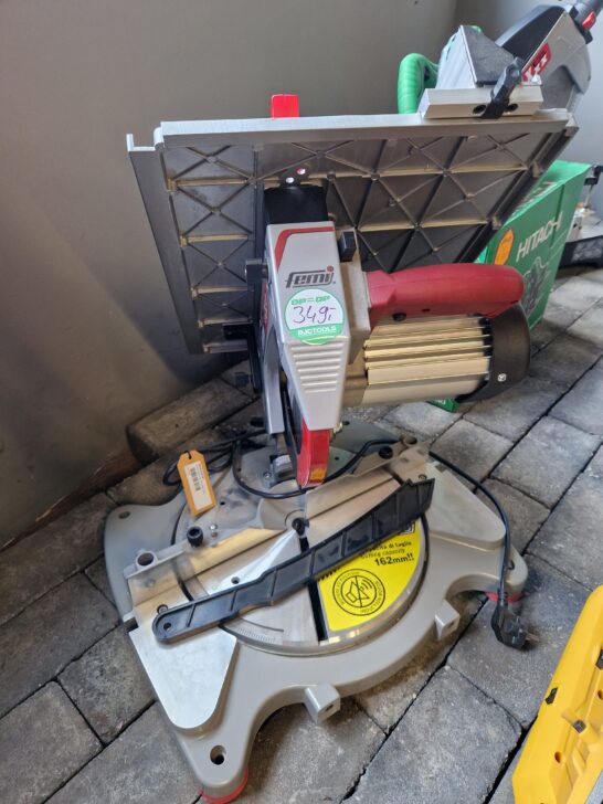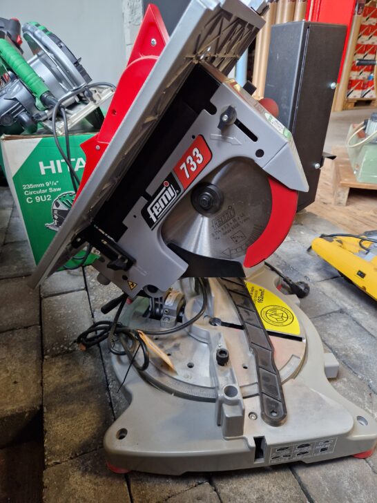 Femi 733 Afkortzaag/verstekzaagmachine met boventafel 1300W – 230V – BuitenKansje!