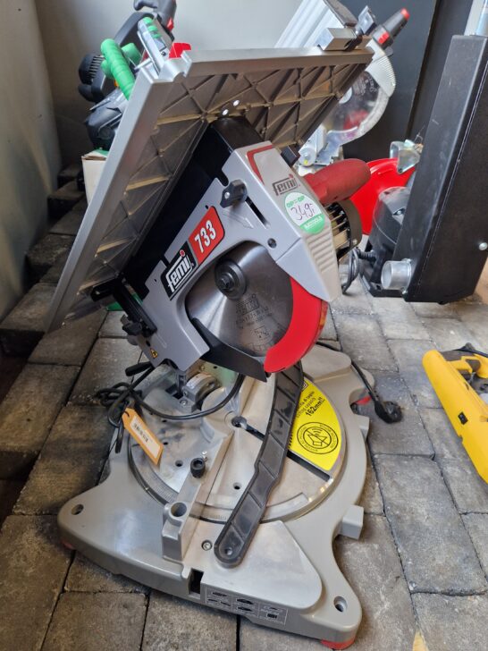 Femi 733 Afkortzaag/verstekzaagmachine met boventafel 1300W – 230V – BuitenKansje!