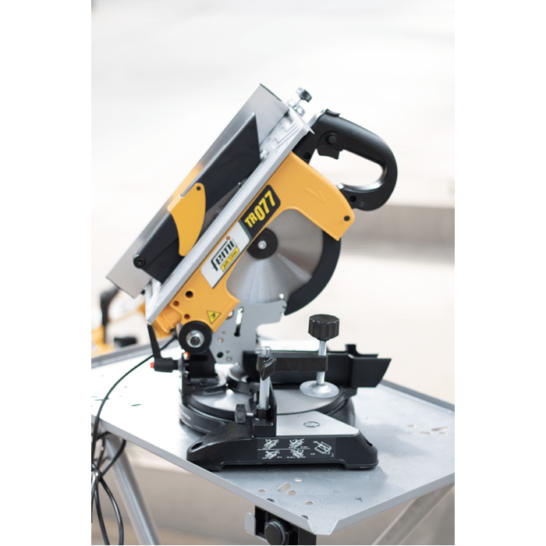 De Femi TR077 afkort/verstekzaag met boventafel – compact – 1200W – 230 V, heeft een krachtige stille motor met transmissieband.