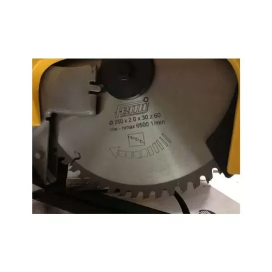 Kenmerken Femi Jobline TR250i Double Cut Afkortzaag/verstekzaagmachine met boventafel – 1200W – 230V