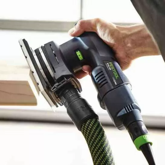 - met plug it-netadapter als schuurmachine met onbegrensde looptijd in het elektrische continubedrijf – ideaal in combinatie met een Festool mobiele stofzuiger binnenshuis.