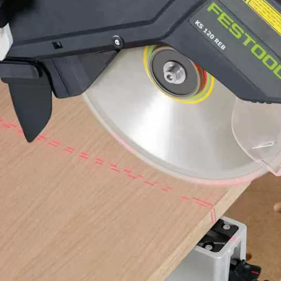 - Sneller naar het beste resultaat – De eerste zaagsnede is al perfect – door de exacte markering van de zaagbreedte met de dubbellijns-laser en fijnafstelling voor een op de millimeter nauwkeurige hoekzaagsnede.