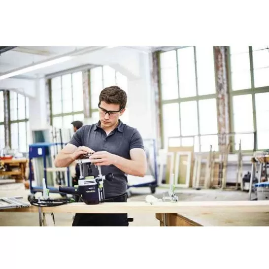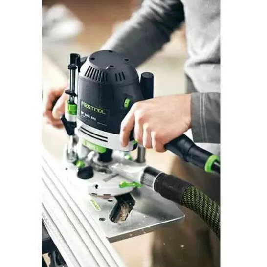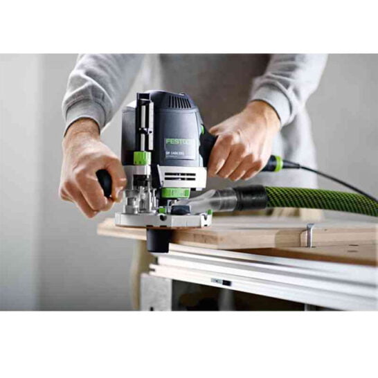 - Gezond en schoon werken – Voor vrij zicht op het werkstuk en een gezonde werkomgeving heeft de OF 1400 geïntegreerde afzuigingssteunen. Je sluit eenvoudigweg de mobiele stofzuiger van Festool aan om schoon te kunnen werken.