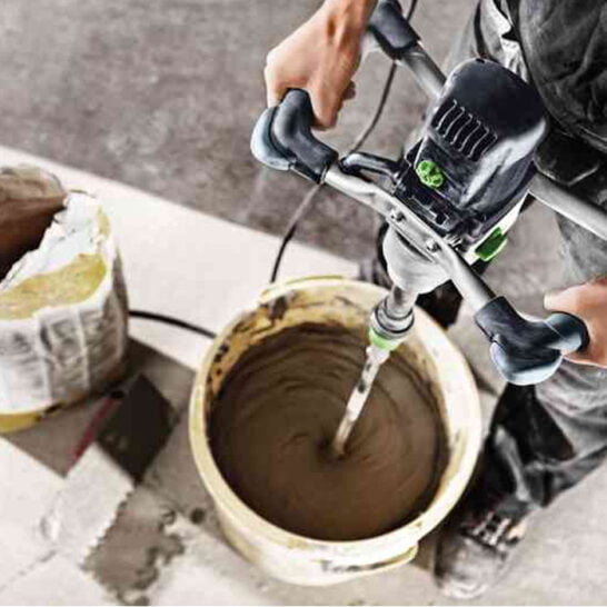 • Een geschikte mengmachine voor het materiaal: De volledige vermenging van het roermengsel is een voorwaarde voor het verkrijgen van gewenste materiaaleigenschappen. Daarom biedt Festool speciale mixerstaven voor verschillende materialen.