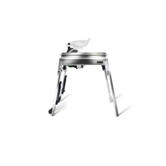 - Eenvoudig mobiel. Eenvoudig stabiel – Door de geïntegreerde transportrollen kan de machine gemakkelijk voortbewogen worden. De kantelbeveiliging met inklapbare ondersteuning geeft de zaag extra stabiliteit.