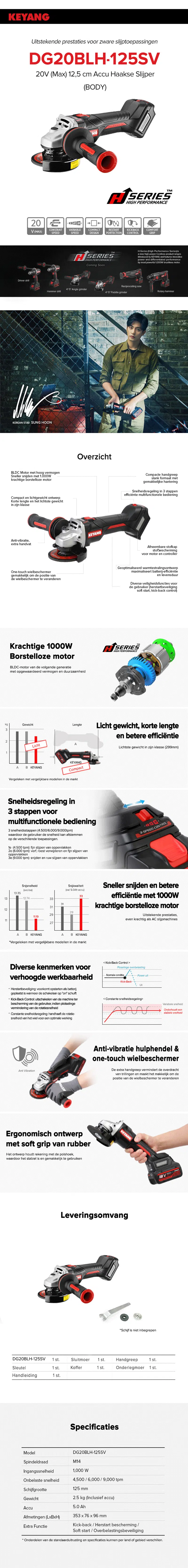 - Keyang DG20BLH-125SV Accu haakse slijper 125mm 18V – BODY
