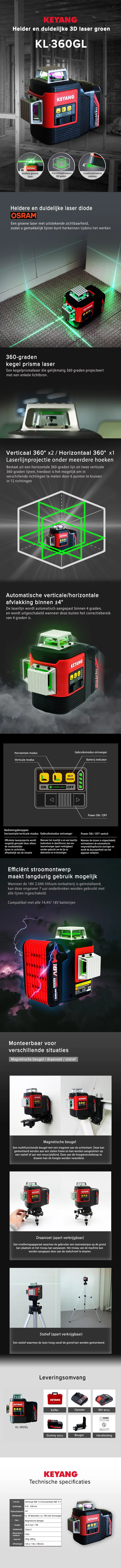 - Keyang KL360GL Accu Kruislijnlaser – Groen