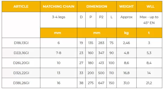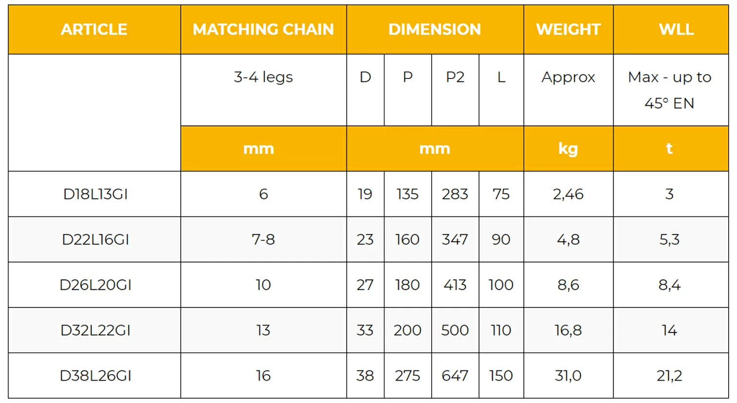 Kenmerken KITO DG4-Serie KW Grade 100 Topschalm inkort – Diverse afmetingen