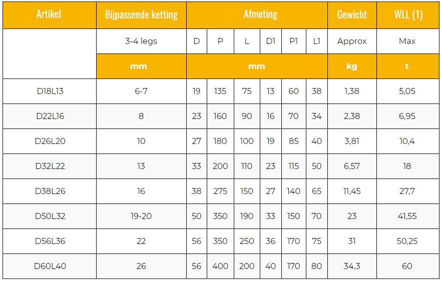 Kenmerken KITO DL-Serie KW Grade 100 Topschalm – Diverse afmetingen