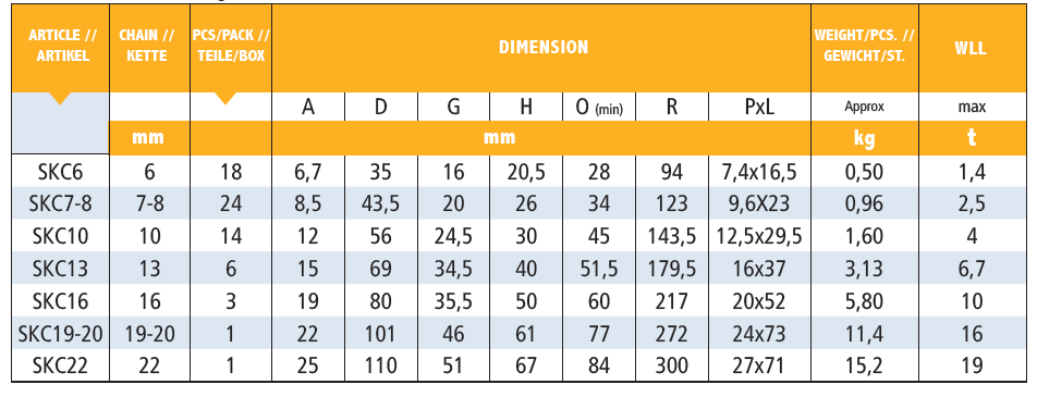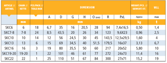 Kenmerken KITO SKC-Serie KW Grade 100 Gaffellasthaak – Diverse afmetingen