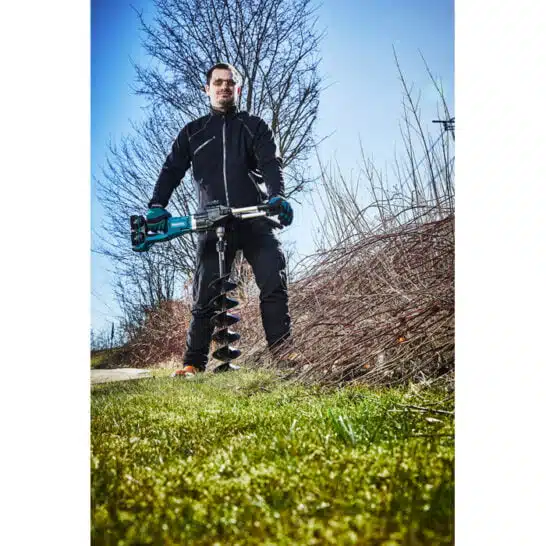 De MAKITA DDG460ZX7 Accugrondboor is een welkome hulp voor het planten van bomen en/of struiken of het plaatsen van bijvoorbeeld een afrastering. Doordat de DDG460ZX7 een accu grondboormachine is heb je geen last meer van uitlaatgassen of het geluid van een brandstofmotor. Kortom schoon, stil en compact. De maximale boorcapaciteit in zandgrond is 200 mm en in kleigrond 150 mm.