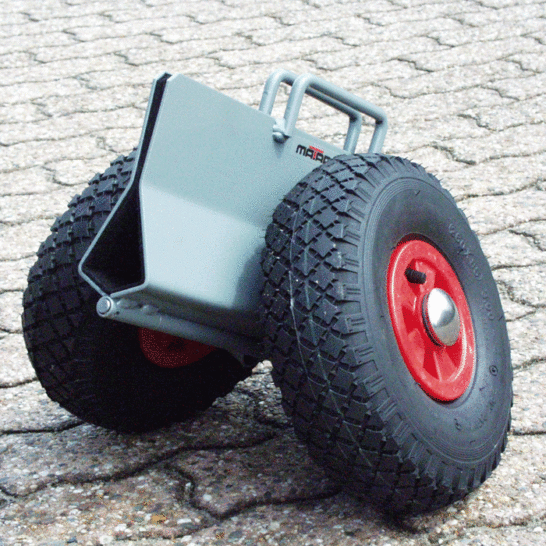 Het karretjes is voorzien van luchtbanden, waardoor ongelijk terrein ook makkelijk begaanbaar is.