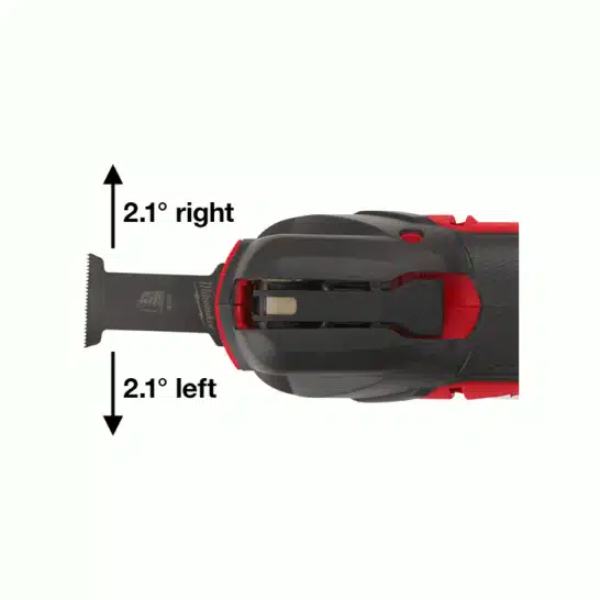 - POWERSTATE™ koolborstelloze motor met een oscillatiehoek van 2,1° (links/rechts) en 10.000 – 20.000 omw/min om een van de snelste zaagsnelheden in de industrie te kunnen leveren