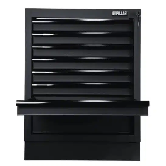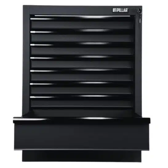Deze ladekast van Pillar met 8 laden is ontwikkeld voor maximale organisatie in professionele werkplaatsen. Dankzij de uitgebreide lade-indeling kun je gereedschap, onderdelen en accessoires overzichtelijk scheiden en snel terugvinden. De laden zijn voorzien van hoogwaardige kogelgelagerde geleiders met soft-close functie, waardoor ze soepel openen en gecontroleerd sluiten, zelfs bij intensief gebruik. Daarnaast zijn de laden uitgerust met beschermende inlays die verschuiven van gereedschap voorkomen. De stevige stalen constructie met industriële poedercoating garandeert een lange levensduur, terwijl het geïntegreerde sleutelslot aan de zijkant zorgt voor veilige opslag.